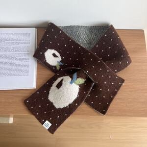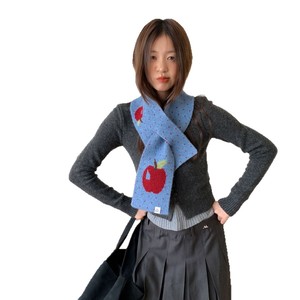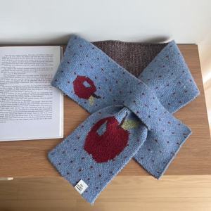 日系可爱红苹果交叉小围巾女圣诞节礼物秋冬保暖百搭显白毛线围脖