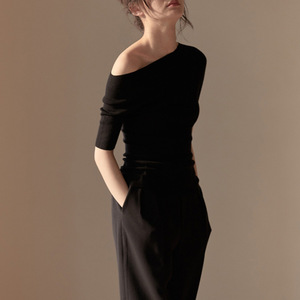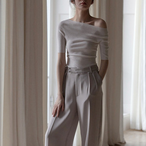 精纺JI细羊毛60支扬子纱 无缝一字领短袖打底衫