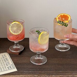 复古浮雕混合花纹酒杯喝水杯红酒杯高脚杯饮料果汁杯海棠花太阳花