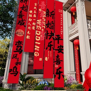 农村结婚院子装饰条幅挂布婚礼自建房外庭院庭院场景布置喜字横幅