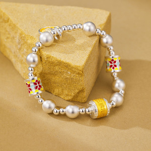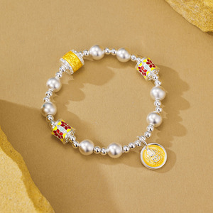 珐琅财神猫眼手链新中式国潮时尚百搭猫眼手串精致财神猫眼手链