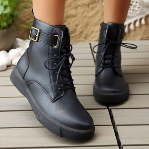 大码圆头英伦风厚底马丁靴2025秋季新款皮带扣跨境侧拉链短靴女