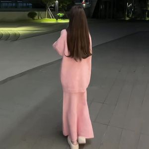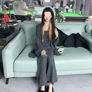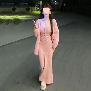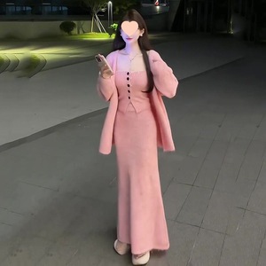 社会女秋冬三件套快手网红同款宽松毛衣外套+排扣背心+鱼尾半身裙