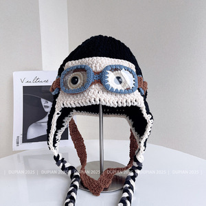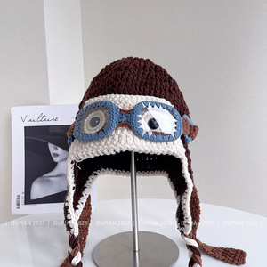 韩版可爱潮流飞行员针织帽子女秋冬新款保暖百搭护耳毛线帽雷锋帽