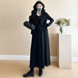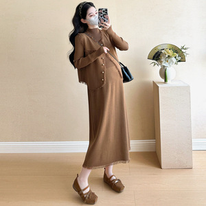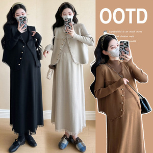 孕妇毛衣套装2025秋小香风孕妇装马甲+连衣裙两件套气质孕妇套装