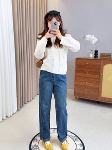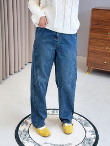 爱元2025年秋季新款大码胖MM女装裤子高腰挽边哈伦牛仔裤YC290