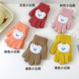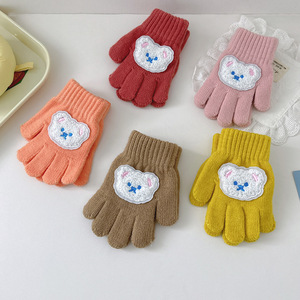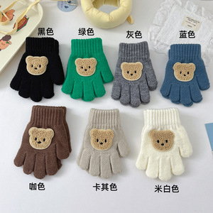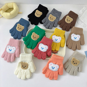 秋冬新款韩版超萌可爱小熊保暖男童女童宝宝手套加厚防寒针织手套