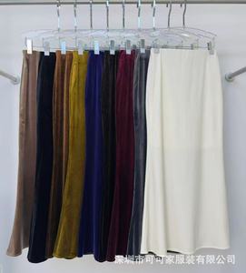 时尚百搭醋酸丝绒半身裙女秋季新款高腰修身显瘦长款鱼尾裙半裙子