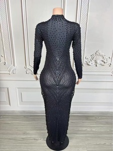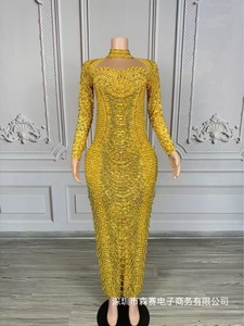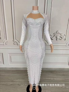 高端轻奢纯白珍珠链珠优雅修身长裙重工轻婚纱环球小姐走秀晚礼服