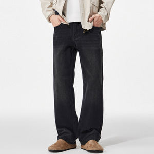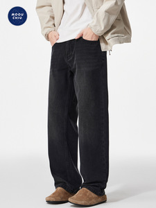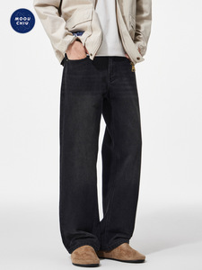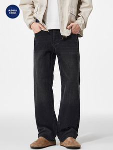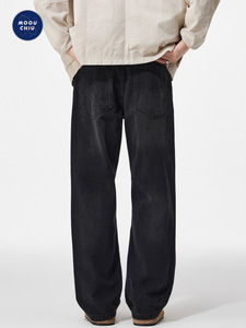 沐丘男装∣黑色竹节肌理感牛仔裤男宽松复古美式cleanfit拖地长裤
