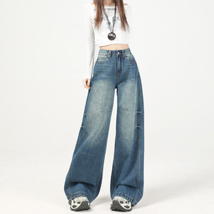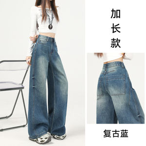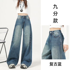 美式扎花设计感阔腿牛仔裤女春秋2025新款宽松显瘦垂感直筒休闲裤