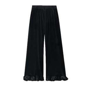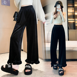 实拍金丝绒荷叶边阔腿裤女2025秋冬高腰显瘦直筒九分裤休闲裤子