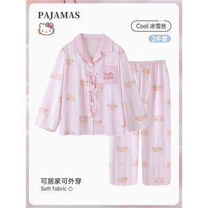 kitty猫睡衣女春秋季冰丝绸长袖2025新款可爱超火甜美家居服夏天