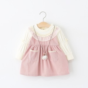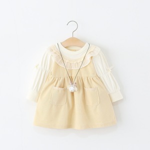 童装批发女童连衣裙春秋季婴幼儿童女宝宝花边口袋假两件公主裙子