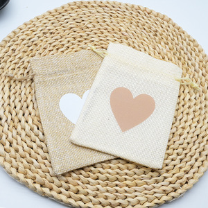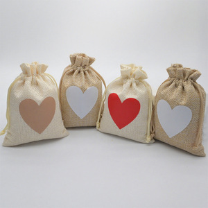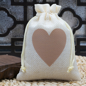 加厚有机棉心形拉绳收纳包派对赠礼布袋国际出口耐磨束口袋