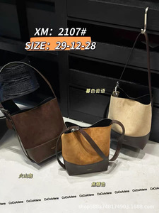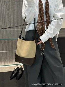 磨砂真皮水桶包包女高级感通勤单肩腋下包大容量慵懒松弛感托特包