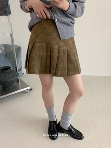 苏珊 2025早秋季新款高腰复古格子纹百褶短裙A字半身裙子女DS287