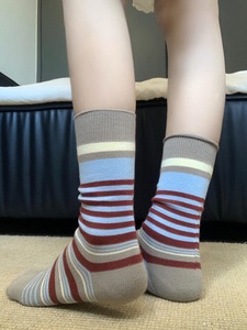 多巴胺卷边堆堆袜子女秋季韩版ins风百搭复古拼色中筒袜洋气撞色