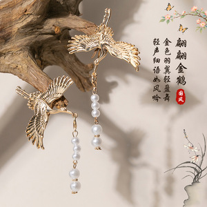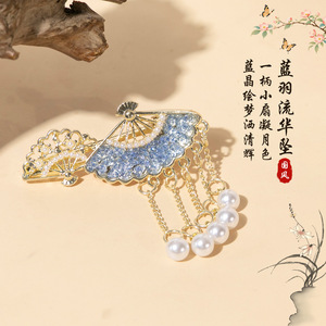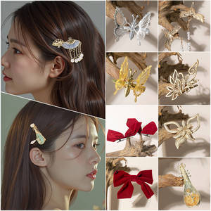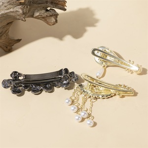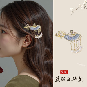 发夹古风扇形珍珠流苏侧边夹刘海夹创意碎发鸭嘴夹子头饰品批发女