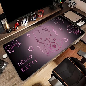 卡通可爱鸭子桌垫家用键盘鼠标垫子防滑耐脏凯蒂猫书桌垫可加锁边