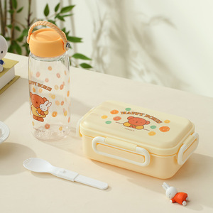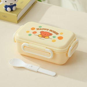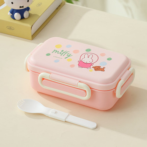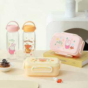 米菲塑料卡通饭盒水杯套装便携可爱儿童便当盒学生食堂分格午餐盒