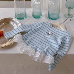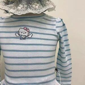 女童长袖T恤儿童春秋款2025新款超好看Kitty圆领花边条纹打底衫潮