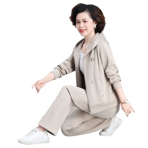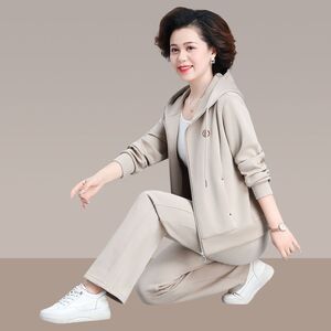 妈妈春秋运动服套装2025新款妈妈时尚连帽外套卫衣休闲两件套