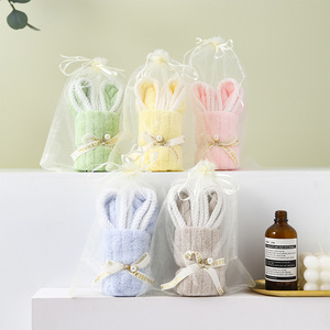 新款包边可爱兔子造型伴手礼毛巾珊瑚绒毛巾婚庆活动开业小礼品