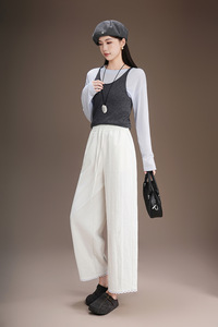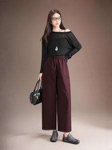 韩系镂空蕾丝花边九分灯笼裤2025秋薄款显瘦洋气高级感阔腿睫毛裤