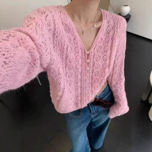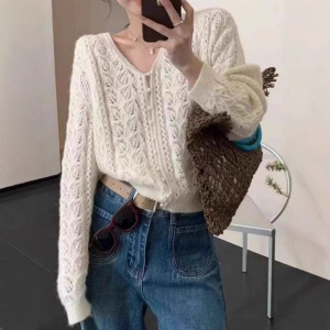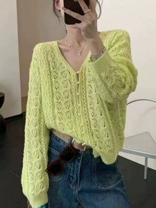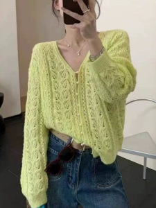 防晒针织开衫女高级感钩花镂空2025秋冬新款宽松温柔风毛衣外套潮