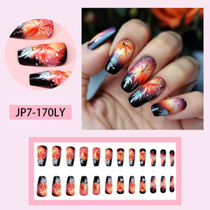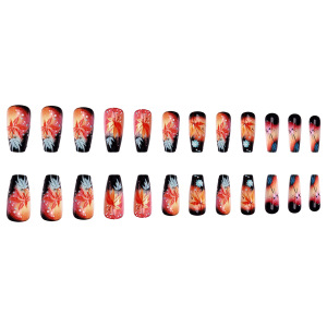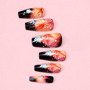 美甲甲片穿戴甲ins风穿戴甲 中长款枫叶图案渐变晕染指甲美甲贴片