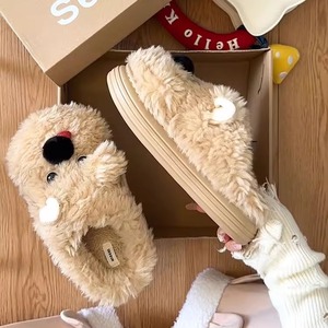 可爱卡通小狗毛毛鞋女2025年秋冬季新款厚底百搭增高防滑包头拖鞋