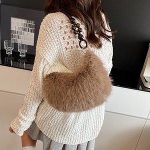 跨境新款毛毛手提包韩版女士搭配手工木珠单肩包简约斜挎包洋气