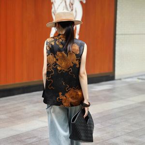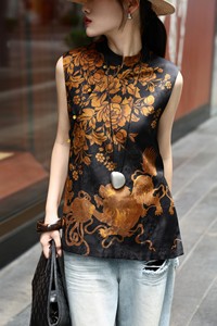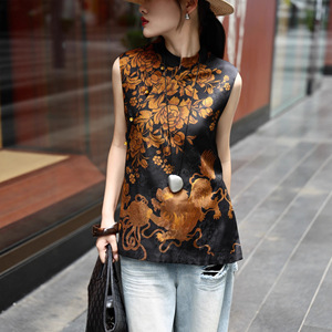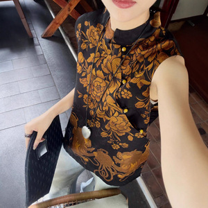 2025秋黑金真丝老缎香云纱国风马甲时尚大气高贵感背心上衣不退换