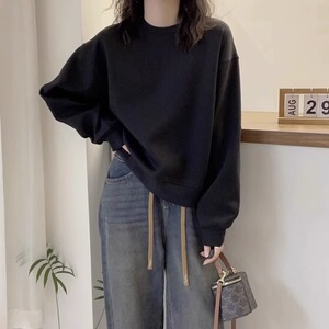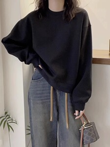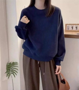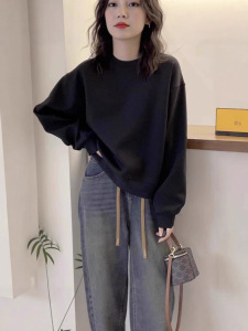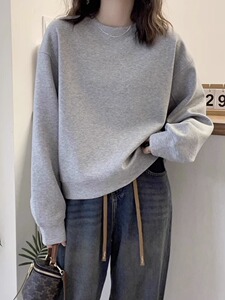 灰色圆领卫衣女2025新款爆款春秋季加绒加厚大码时尚洋气无帽上衣