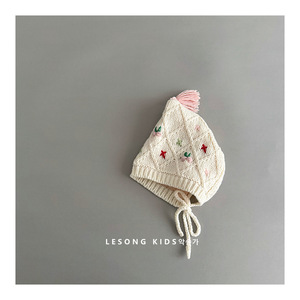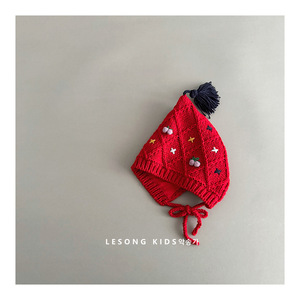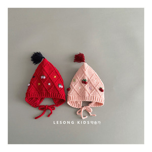 儿童帽子秋冬款婴幼儿毛线针织帽男宝女宝新款可爱毛球护耳套头帽