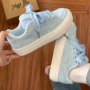 校园百搭小白鞋厚底2025新款时尚休闲鞋小众设计拼接猫咪刺绣板鞋