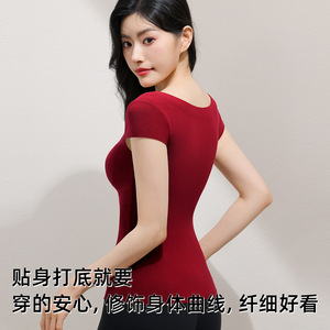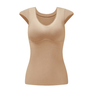 秋冬小飞袖暖肤衣背心托胸一体式打底衫桑蚕丝莫代尔养护保暖内衣