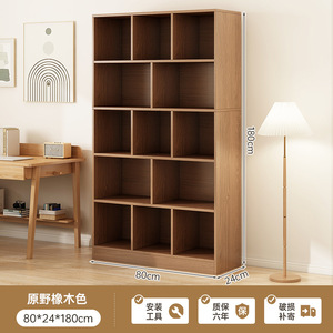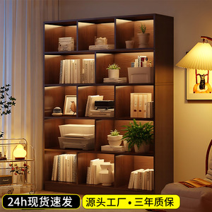 实木书架置物架落地靠墙柜子家用展示柜书柜一体客厅储物柜格子柜
