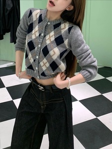 WENWN【PRA主角登场】学院风菱格纹圆领长袖秋冬毛衣针织衫