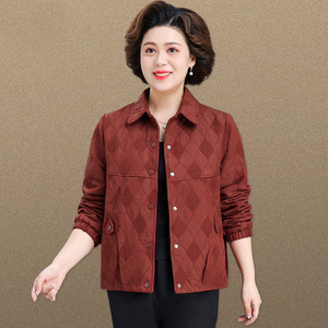 外套女中年妈妈显年轻秋装阔太太夹克2025新款中老年春秋印花上衣