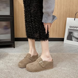 内增高7CM勃肯鞋女2025秋冬新款包头半拖鞋女外穿一脚蹬博肯鞋