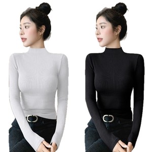 冰丝罗纹 半高领打底修身春秋紧身显瘦时髦高档螺纹黑色上衣