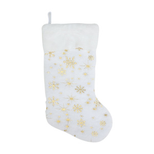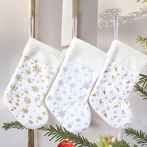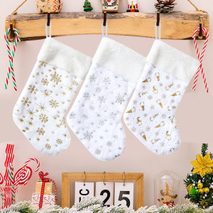 跨境新款圣诞袜橱窗挂件烫金雪花毛绒圣诞袜子儿童礼物袋壁橱布置