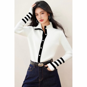 2025秋季新款时尚百搭设计感条纹拼接撞色针织开衫女法式时尚上衣