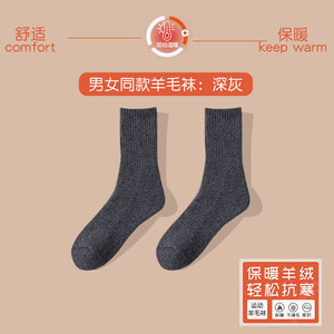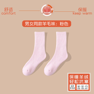 长筒毛圈羊毛袜子秋冬季加绒加厚中筒男士女士袜防臭保暖毛巾冬天