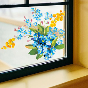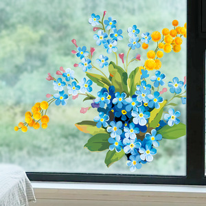 跨境亚马逊彩清新的手绘花朵玻璃窗户家居美化装饰窗贴批发静电贴