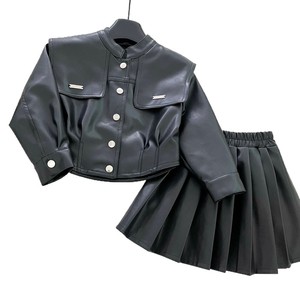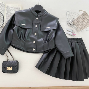 女童软PU皮衣套装裙秋季2025年新款女孩韩版时髦儿童皮外套两件套