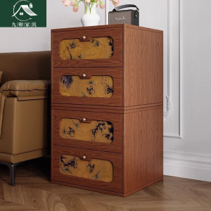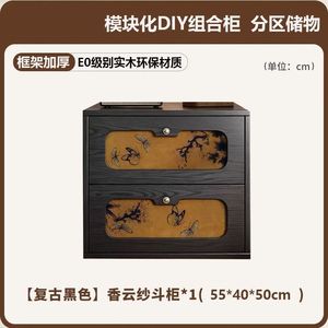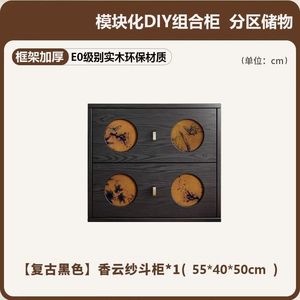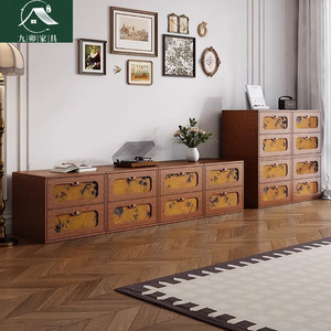 中古风香云纱斗柜模块组合柜客厅复古轻奢电视柜床头柜实木卡门柜