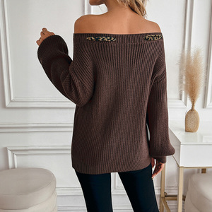 亚马逊一字领复古针织衫2025秋冬跨境欧美慵懒风蝴蝶结套头毛衣女